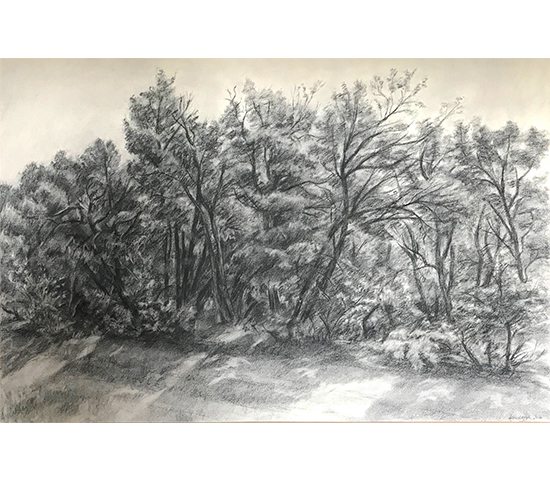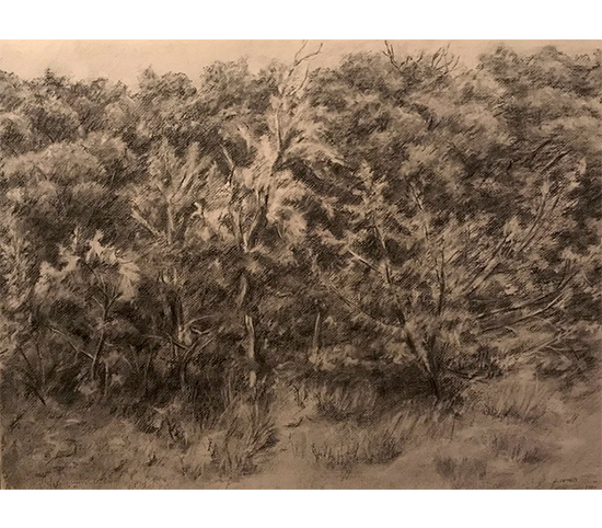 Arbustes à contre-jour(Fusain 70,5 x 52 cm) -