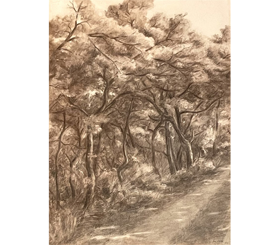 Petits chênes verts sur le chemin(Fusain 104 x 72 cm) -
