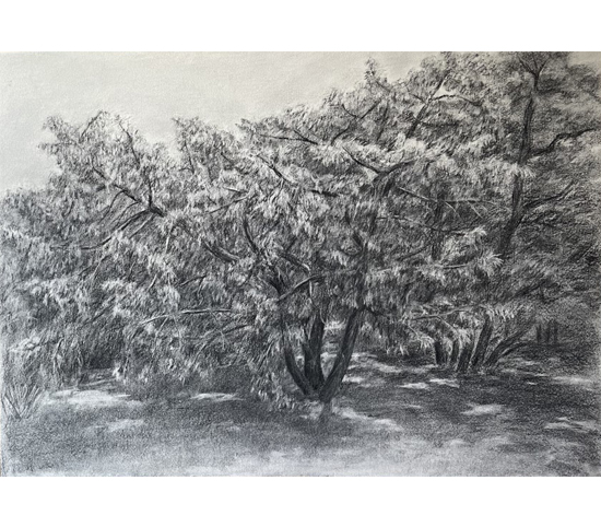 Le tilleul à contre-jour - 2019Fusain sur papier 119,5x95 cm